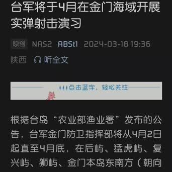值得关注的是,根据台军发布的公告,4月上旬将在猛虎屿进行"军事操演",还公布了射击区域,演习期间,禁止船只驶入猛虎屿附近海域。