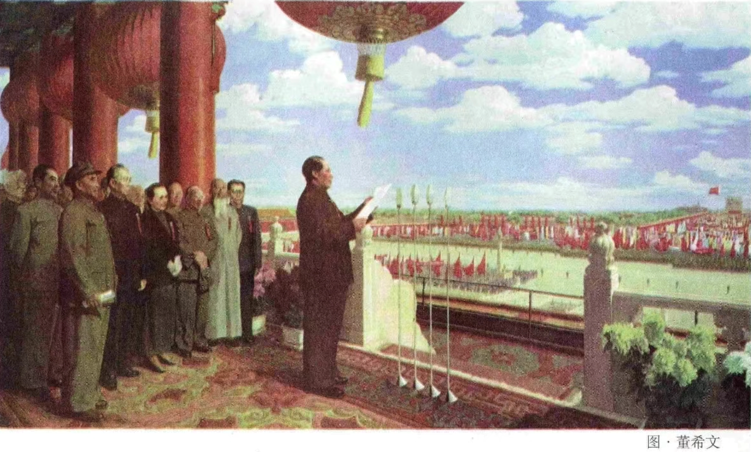1949年10月1日,开国大典在天安门广场隆重举行,毛泽东在天安门城楼上庄严地宣告中华人民共和国成立,中国的历史从此开辟了一个新的时代。