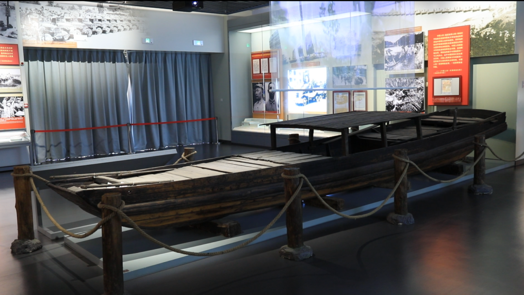 △香山革命纪念馆中展示的渡江战役时期使用的木船