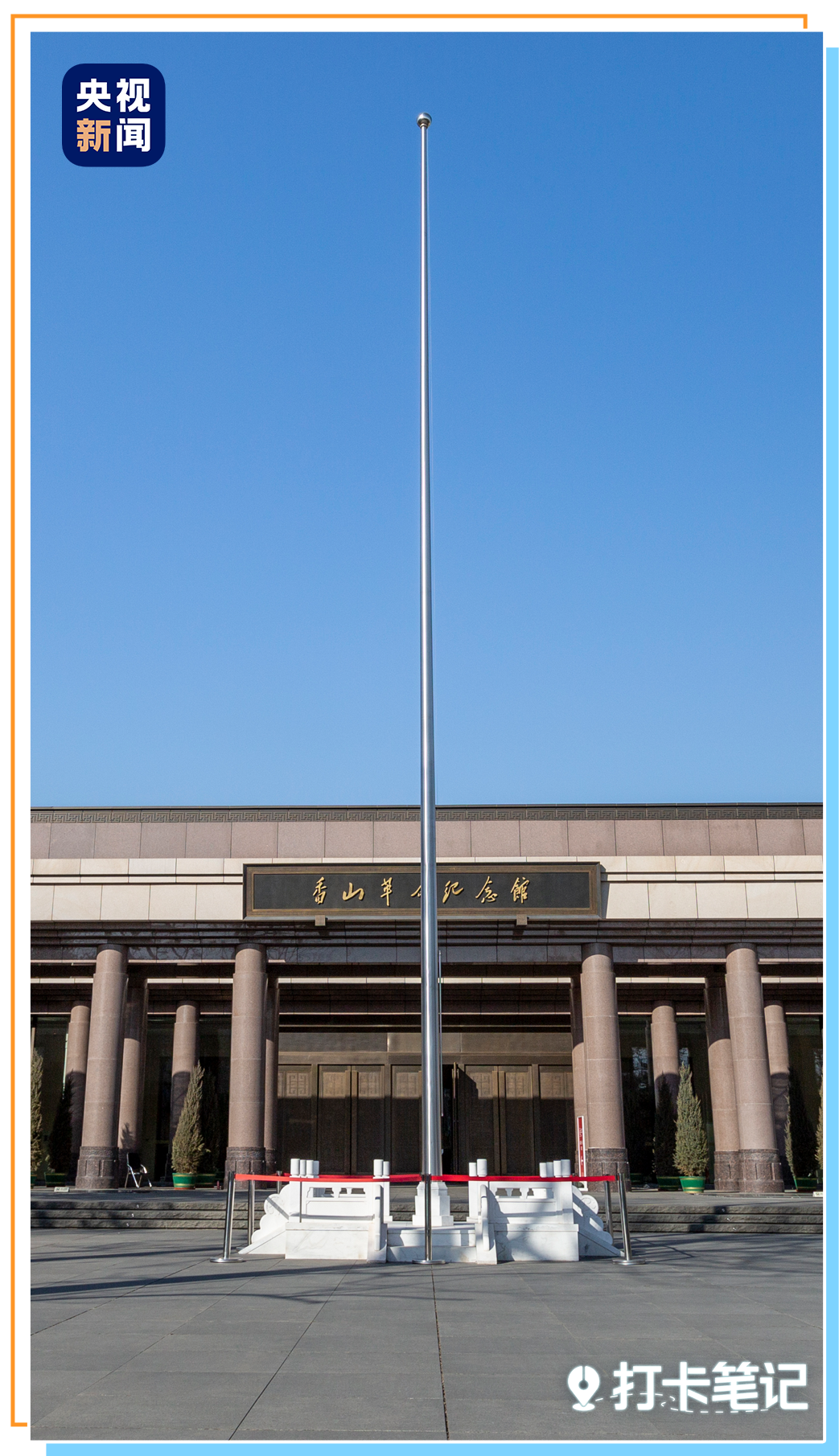 在香山脚下的香山革命纪念馆南广场上,高19.49米的国旗杆,寓意中华人民共和国诞生于1949年。